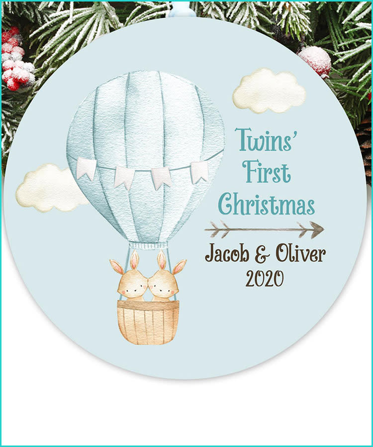 Buy it: The Butterfly Press Personalized Twins Christmas Ornament, starting at $22, Etsy.com