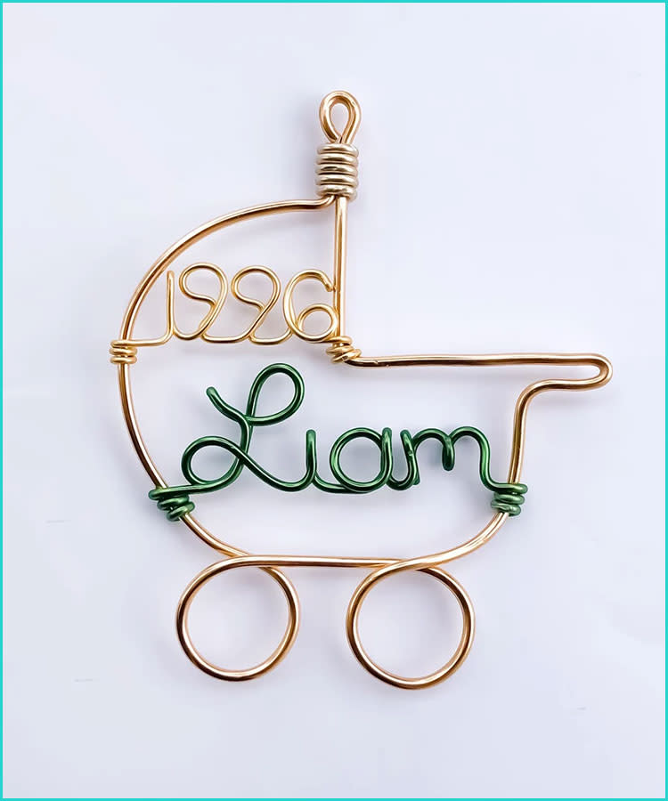For something totally timeless, this elegant wire baby Christmas ornament is shaped similar a vintage stroller that displays the year and baby'due south name. It'll have a place of accolade on your tree, even if you switch upward the mode of your other holiday decorations around the house.