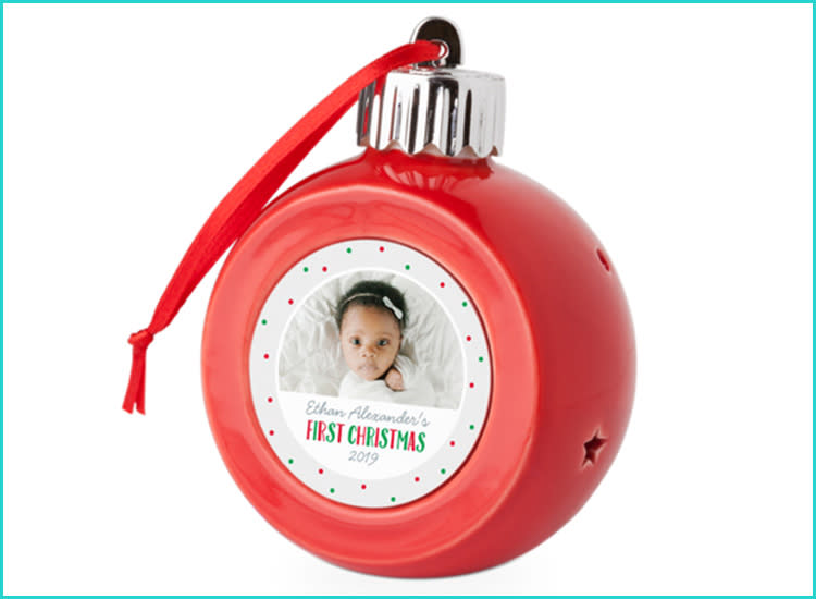 Purchase it: Shutterfly My First Christmas Drinking glass Ornament, $35, Shutterfly.com