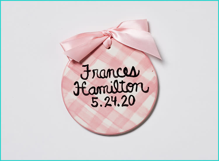 Buy it: Caroline & Co Handpainted Plaid Infant Girl First Christmas Ornament, $twoscore, TheTot.com