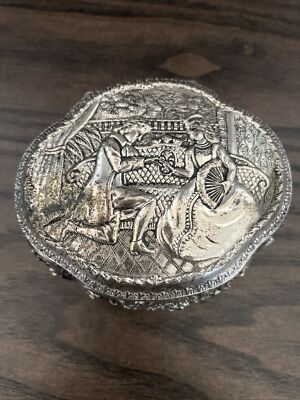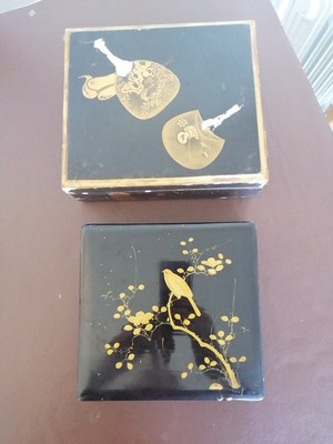 | $ 64.99 Buy It At present $12.65 Aircraft Location: Winnetka, United States The motif of WATER LILIES and WILD GRASSES surrounded by florals besides has an Asian experience. The centers of the silver and gilt flowers on the chapeau are slightly ... more than embossed and in the opposite color of the bloom.aureate on silver.argent on gold. $ 65.03 Buy It Now $29.75 Aircraft Location: LEIGHTON BUZZARD, United Kingdom The wooden box has a mountain and river village scene on the lid and various scenes on the iv edges. $ 26.02 $31.52 Shipping Location: HORSHAM, United Kingdom Antique Blackness & GILT LACQUERED TRINKET/JEWELLERY BOXES. One decorated with gilded bird on branch. 21 Ten xx X 6cm The other decorated with gilded fans. & Birds. ... more than 24 X 21 X 8 cm *** BOTH FOR RESTORATION *** $ 31.98 Buy It Now $17.29 Shipping Location: Yerington, United States Beautiful Estate Sale Find! This solid wood box is in fantastic condition except for a couple very small scuffs as shown in the photos! $ 99.99 $eighteen.75 Aircraft Location: Stockholm, United States The lid is hand carved and colored with iii Elephants. The etching and coloring is exceptional and incredibly detailed. In one surface area, the lines are incorporated ... more into the body of the elephant, which is carved partly on the top and curves downwardly the side. $ 28.00 Purchase It At present $x.fourscore Shipping Location: Woodstock, United states Unique design. Panels on 3 sides and superlative. Await painted. Unsure of how made. Book is forest with reddish lining. See last 2 photos. The lid doesn't quite close ... more and information technology also lays apartment when opened. Maybe needs adjusting?. $ 34.95 Buy It Now $8.55 Aircraft Location: Bethel, United States $ 28.95 Buy It At present $six.55 Shipping Location: Bethel, United States $ 32.52 $19.45 Shipping Location: LONDON, United Kingdom The trunk of the casket seems to have been made with the intention of hinging the lid. The hat is a beautifully rendered scene of a koi bother in a swimming ... more with flag irises. An antique silverish plated Japanese jewelry and trinket box. $ 34.95 Purchase It Now $viii.55 Aircraft Location: Bethel, Us $ 39.01 Buy It At present $29.06 Shipping Location: WESTCLIFF-ON-Body of water, United Kingdom Old antique style deep mahogany colour lacquer wood Japanese box. Hand painted storks in flight with Fudzijama on background to the hat. Sides are decorated ... more with cherry flower, colours are bit faded Hinged lid. $ 24.99 Purchase It Now $7.forty Aircraft Location: La Verkin, United States Equally far every bit I know, this is an antique original. Embossed floral flowers and leaves. Silver color. Red inner lining. Underside reads "Japan". Note to self: ... more Box O. $ 21.59 Purchase It Now $ten.15 Shipping Location: La Verkin, United States Equally far equally I know, this is an antiquarian original.Hexagon al shape. Golden torso with embossed roses & leaves. Pinnacle features a green in lay with a couple of ... more roses in the center. Red lining on the inside. $ 85.00 Purchase It At present $13.95 Shipping Location: Spring, The states For your consideration is a very beautiful antique Japanese box. Round shape standing on 3 feet, flat top. Gild design around the rim. All original. ... more minor vesture to the lacquer heer and in that location, consistent with age and utilise. $ 55.00 Buy Information technology Now $5.95 Shipping Location: Hartselle, United States Vintage Japanese Stone or Bone? Trinket Jewelry Box Hand Painted, Artist Signed. Shipped with USPS Priority Mail. $ 14.99 Buy It Now $5.95 Shipping Location: Queen Creek, United States This Trinket box is so cute! The inside is in smashing condition. This box might non be perfect but it is still in skillful condition and bang-up for any drove. $ 18.23 Buy It Now $10.15 Shipping Location: La Verkin, U.s.a. As far as I know, this is an antique original. Lattice, floral / flowers and roses forth the side. Red inner lining. Underside reads "Japan". Note to ... more self: Box O. $ 15.61 Purchase It Now $34.55 Shipping Location: BISHOP AUCKLAND, United Kingdom Some wear and chips to blackness pigment. Measures approx 7.5x6.5x3". Sticker within lid "Fry". Delight have not of photos for more details. $ 125.00 Buy It Now Free Aircraft Location: Renton, United states of america Manufacture: ANDO. Kawade Shibataro was a master in this area, producing wares for the Tokyo Purple Palace.Totai (kidney edible bean cloisonné). $ 63.74 $29.59 Aircraft Location: LONDON, United Kingdom Big Antiquarian Japanese lacquer Trinket/ jewelry box with gilded mural scene. Circa xix th Century lacquer box. Outside with gold decoration on black ... more than (dark brown) lacquer. Information technology has missing inner separation part and feet. $ 58.54 Buy Information technology Now $24.42 Aircraft Location: WIGTON, United Kingdom $ 150.00 Buy Information technology At present Location: Hawthorne, Usa Up FOR SALE IS THIS Small-scale CLOISONNE FLORAL WHITE ENAMEL HEXAGON BOX. THE SIZE IS 3"iii/4 W. X 1"3/16 H. THE CONDITION IS Great WITH NO CHIPS CRACKS ... more OR REPAIRS. $ 19.51 Buy It Now $30.08 Aircraft Location: HOVE, Great britain Nice old shabby chichi jewellery box. .. slap-up for jewellery and other $.25 and bobs A lovely Bohemian item .The box measures 10.5 Cm wide 30 Cm in length ... more than and 7 Cm in depth ..LOVELY blueprint and NICE lacquered piece of work Not in make new condition as has been used and is one-time .This is a lovely particular .Would look nice in the bedroom Pretty sure it'southward Japanese.Ok CONDITION For its age THANKS FOR LOOKING .Please TAKE A LOOK AT MY OTHER ITEMS : ) We are selling lots more than items and jewellery ! $ 18.23 Buy It Now $seven.twoscore Shipping Location: La Verkin, United States Underside reads "Japan", "Pat No. 1067998". As far as I know, this is an antique original. Embossed cherubs and floral. Bright golden color. Red inner ... mo